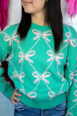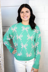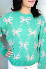 Update your sweater game with our Enola sweater! With its round neck and long sleeves, this sweater is perfect for any occasion. The unique ribbon pattern adds a touch of playfulness to your look. Stay cozy and stylish with our Enola sweater in sage pink!