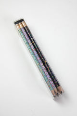 Bring a pop of pattern and a touch of gold foil to your morning crosswords or pop quizzes. Our 12-piece, pre-sharpened writing pencil set includes three of each design with black erasers!