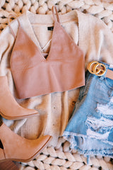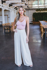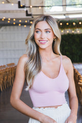 Eva Ribbed Cropped Cami, Mauve Pink