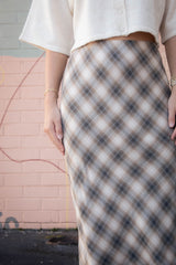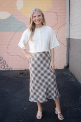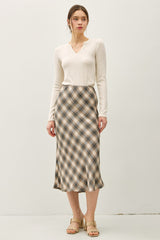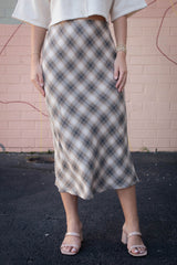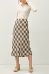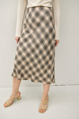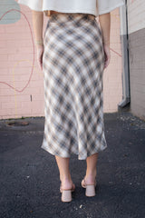 Evangeline Tartan Plaid Flowy Midi Skirt, Charcoal