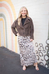 Step out in style with the Everyday Maxi Skirt in Mother Leopard print from Sanctuary. Its silky satin fabric and elastic waist deliver comfort while making a bold, playful statement. Perfect for twirling through your day with effortless flair!