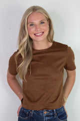 Ezra Faux Suede Top, Chicory Coffee | Steve Madden