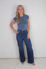 Far Out High Rise Wide Leg Jeans, Waterfall | Daze