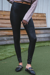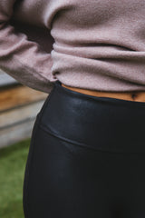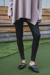 Faux Leather Fleece Lined Leggings, Black | SPANX®