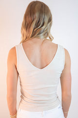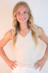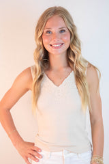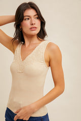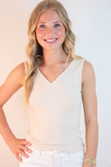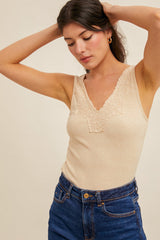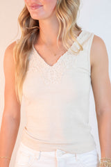 Felicity Lace Trim Ribbed Tank, Taupe Melange