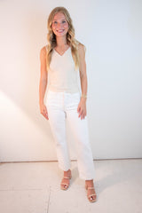 Spice up your wardrobe with our Felicity tank, featuring a sultry lace V-neck and cozy ribbed knit fabric. The melange/heathered look adds a touch of uniqueness. Perfect for a flirty and fun look!