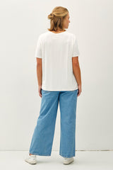 Finley V-Neck Boxy Tee, Off White | Plus Size