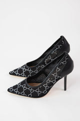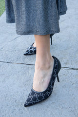 Introducing the Flora Mesh Rhinestone Pump: a stunning heel with mesh and rhinestone details that will elevate any outfit. The pointed toe adds a touch of sophistication, while the heel provides the perfect amount of height. Perfect for adding a touch of flair to your wardrobe!