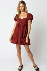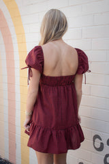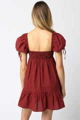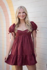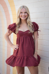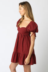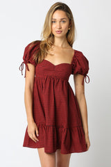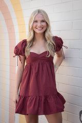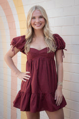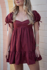 This playful checkered dress features a charming sweetheart neckline and short puff sleeves with delicate tie details. The smocked back and elastic waist ensure a comfortable, flattering fit, while the mini length and ruffled hem add a flirty, fun touch perfect for sunny days or casual outings!