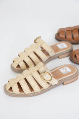 Introducing the Fyona Fisherman Style Sandal - the perfect blend of style and comfort! Featuring an adjustable gold buckle and slip-on design, these sandals will keep you looking and feeling cool all day. (You'll be hooked!)