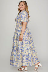Gemma Tiered Floral Maxi Dress, Blue | Plus Size