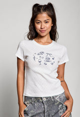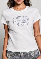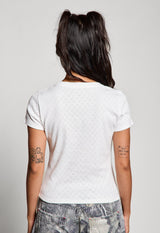 Girl Brunch Heart Pointelle Baby Tee, Off White