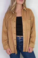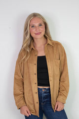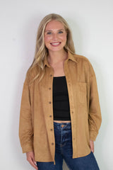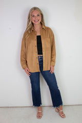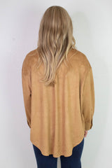 Bounce into cozy vibes with the Gloria Suede Collared Shirt in a warm ginger hue. This oversized, button-down shirt features a charming chest pocket and long sleeves perfect for layering or rocking solo. Soft suede texture meets relaxed fit—your new go-to for effortless style and comfort!