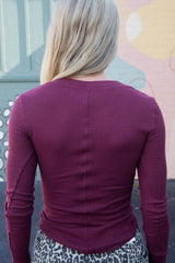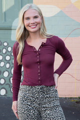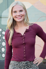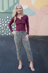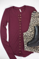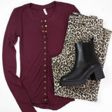 This playful acai cardigan features a button-front design and a cozy round neck, perfect for layering on any adventure. With long sleeves and seam-detailed sides, it adds a subtle touch of style while keeping you comfortably chic wherever you’re going!