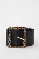Unleash your inner fashionista with our Gold Square Buckle Belt in sleek black faux leather. The bold, gold square buckle adds a touch of glamour to any outfit, while the sturdy faux leather material ensures long-lasting wear. Elevate your style with this quirky and versatile accessory.