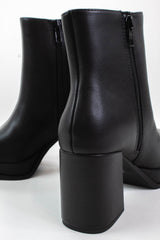 Step out in style with the Graham Platform Dress Boot in sleek black faux leather. Featuring a comfortable platform heel and a trendy square toe, these boots bring bold vibes to any outfit. The inside zipper closure offers easy wear while keeping your look sharp and polished. Perfect for dressing up or adding edge to your everyday style, these boots are made to turn heads and lift your confidence!