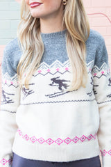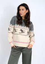 Stay cozy and stylish on the slopes or in the lodge with the Gunhild Ski Print Sweater. This grey pullover features a fun ski-inspired pattern, a comfy crew neckline, and long sleeves perfect for layering or wearing solo. It’s your new go-to for chilly days when you want warmth without sacrificing flair!