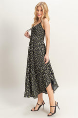 Halle Ditsy Floral Sleeveless Midi Dress, Black