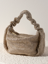 Carry the sparkle with your wherever you go this holiday season with the Harley Bag. This chic golden bag features an all-over texture of sparkly, iridescent glass beads that reflect the light and make your outfit pop. Stay trendy and stylish without compromising functionality with its delicately scrunched handle and petite mini-bag frame, making it the perfect purse to carry on your arm during a night out!