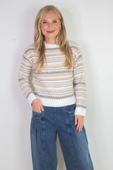 Hera Crew Neck Striped Sweater, Natural | RD Style