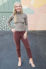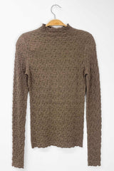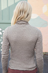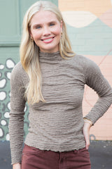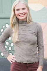 Embrace cozy charm with the Hope Textured Crinkle Knit Top in Mushroom. Featuring playful lettuce edges, a chic mock neck, and long sleeves, this top adds a fun twist to your everyday look while keeping you comfortably stylish. Perfect for layering or wearing solo, it’s a delightful blend of texture and flair!