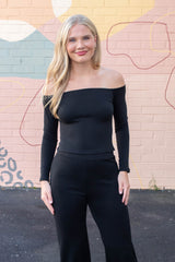 Step into comfort and style with the Hustle Knit Wide Leg Pants in classic black. Featuring a roomy wide-leg cut and a stretchy elastic waist, these pants move with you while keeping you looking effortlessly chic. Perfect for lounging or turning heads on the go, they bring a playful twist to your everyday wardrobe!