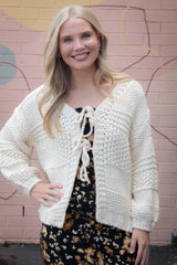 Iggy Chunky Tie Front Cardigan, Ivory | Sadie & Sage