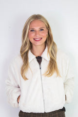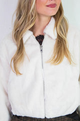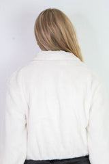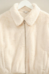 Wrap yourself in cozy charm with the Irene Faux Fur Jacket in Cream. This soft, plush jacket features a zip-up closure and a fluffy collar that feels like a warm hug. With handy side pockets and an elastic hem, it’s perfect for keeping comfy and stylish on chilly days. Embrace warmth with a playful twist!
