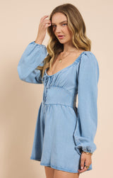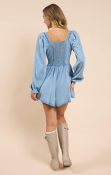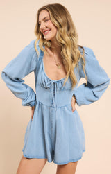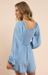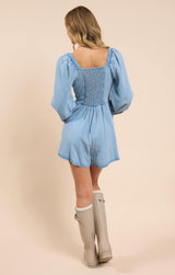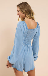 It's Pouring Smocked Back Romper, Light Chambray | Sadie & Sage