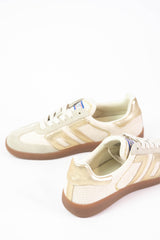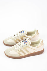 Step into the past with these funky Iuta Retro Woven Sneakers! Featuring a unique woven design with leather accents and a retro suede toe, these low top sneakers in off white with gold accents will add some playful flair to any outfit. Channel your inner hippie with this quirky and stylish footwear option!