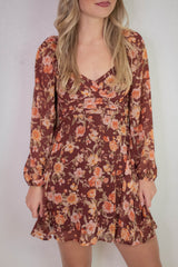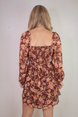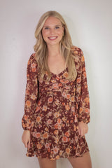 This playful Ivy Sweetheart Neck Mini Dress in rich burgundy features a charming floral print and a flattering sweetheart neckline. Long sleeves and a smocked back provide comfort and style, while the pleated waist and tie waist back add a flirty, adjustable fit perfect for twirling through any occasion!