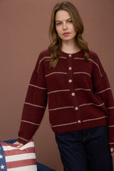 Jade Thin Stripe Button Down Cardigan, Red Wood