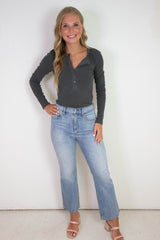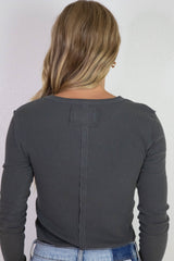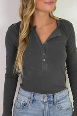 The Jamie Henley Top in black brings a playful twist to your everyday look. Featuring a classic Henley style with button closure and long sleeves, it’s perfect for layering or wearing solo. The ribbed knit fabric adds cozy texture, while raw seam details give it a cool, undone vibe. Effortlessly stylish and comfy, this top is ready to brighten up your wardrobe!