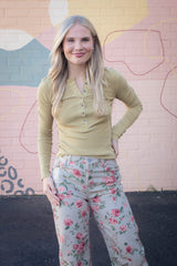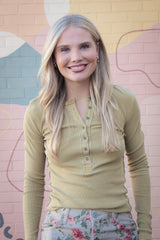 The Jamie Henley Top in dried tobacco brings a playful twist to your everyday look. Featuring a classic Henley style with button closure and long sleeves, it’s perfect for layering or wearing solo. The ribbed knit fabric adds cozy texture, while raw seam details give it a cool, undone vibe. Effortlessly stylish and comfy, this top is ready to brighten up your wardrobe!