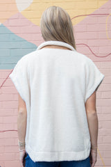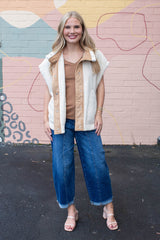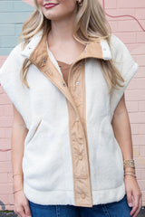 Jasmine Fleece Suede Contrast Vest, Ecru