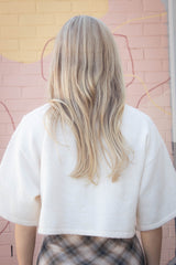 Jeanne Cropped Crew Neck Sweater, Cream