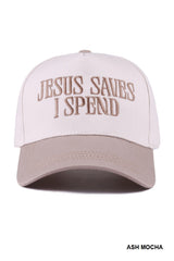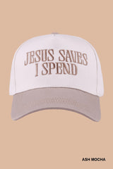 Jesus Saves I Spend Two Tone Cotton Cap, Ash Mocha