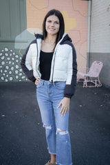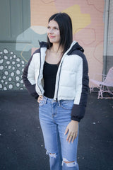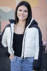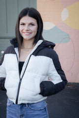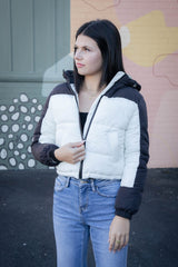 Stay warm and stylish with our Joi Color Block Puffer Jacket. Featuring a playful colorblocked design, puffer style for extra insulation, and a zipper closure for convenience. The drawstring hood and hem add extra warmth and style, while the side pockets provide storage for your essentials. Perfect for those looking to add a touch of fun to their winter wardrobe!