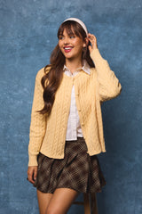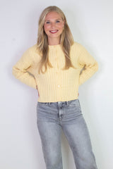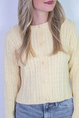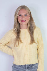 Wrap yourself in cozy charm with the Josephine Cable Knit Boxy Cardigan in Butter. Featuring a playful boxy fit and classic cable knit texture, this cardigan buttons down with ease and sports a flattering crew neckline. Long sleeves add extra warmth for those breezy days. Perfect for layering or wearing solo, it’s a fun and comfy addition to your casual wardrobe!