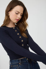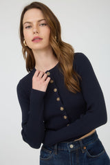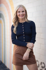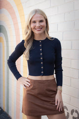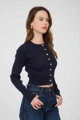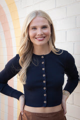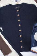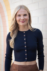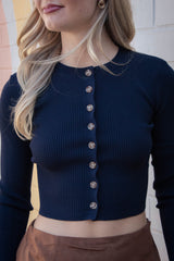 This Josie Rib Knit Cropped Cardigan in navy is your new go-to for layering with a twist. Featuring a cozy ribbed knit, long sleeves, and a playful cropped cut, it buttons down the front for easy style swaps. The round neck adds a sweet touch, making it perfect for mixing and matching with your favorite outfits!