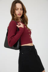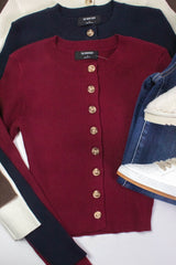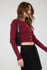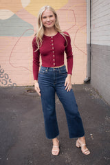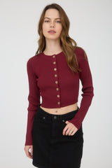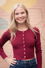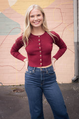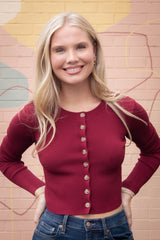 This Josie Rib Knit Cropped Cardigan in red wood is your new go-to for layering with a twist. Featuring a cozy ribbed knit, long sleeves, and a playful cropped cut, it buttons down the front for easy style swaps. The round neck adds a sweet touch, making it perfect for mixing and matching with your favorite outfits!