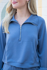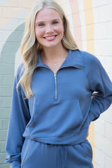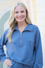 Jovie Half Zip Knit Sweatshirt, Dusty Navy