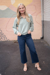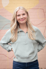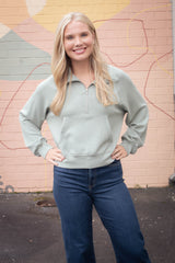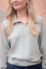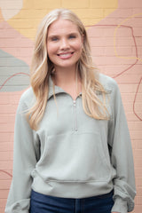 Jovie Half Zip Knit Sweatshirt, Sage Green
