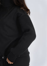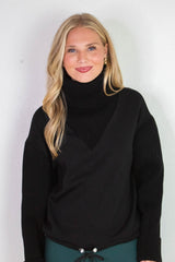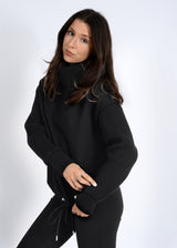 Cozy up in the Jovie Soft Knit Ribbed Detail Sweater, designed to keep you snug with its soft knit fabric and playful ribbed sleeves and neck. The turtleneck adds extra warmth, while long cuffed sleeves bring that perfect touch of style and comfort. Finished with a fun drawstring hem, this black sweater is your new go-to for laid-back days with a twist!