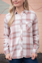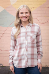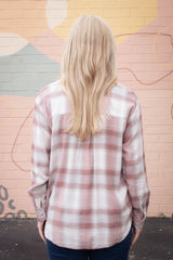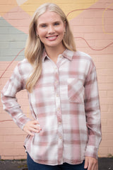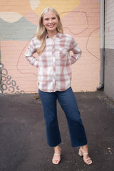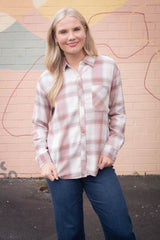 Juliette Plaid Button Up Shirt, Dusty Pink