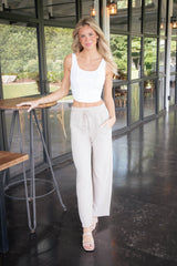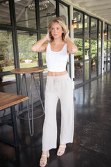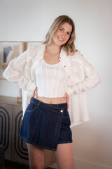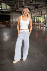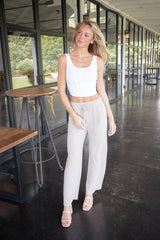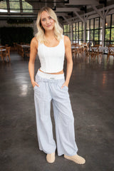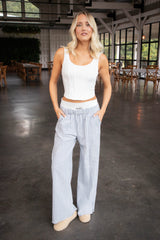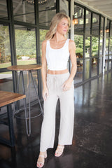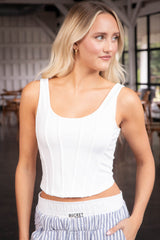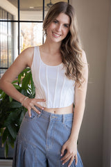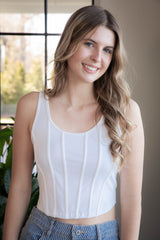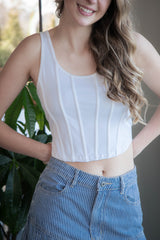 Get a top that's as versatile as your coffee order with the Kaila Line Detail Top. Featuring stylish line detailing, a flattering curved hem, and a cropped cut, this top is perfect for any occasion. Sleeveless with a round neck, it's the ultimate staple piece for your wardrobe.