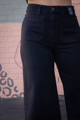 Kick it old-school with our Karla Vintage Ankle Wide Leg Jeans! These ebony black beauties feature roomy wide legs that swing with every step and adorable patch pockets that add both style and function. Perfect for channeling those retro vibes while keeping your look fresh and fun!