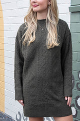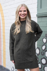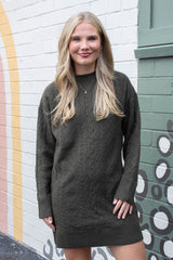 Cozy up in the Kehlani Cable Knit Sweater Dress in Olive! Featuring long sleeves and a classic round neck, this mini-length dress wraps you in soft warmth while keeping your look effortlessly chic. Perfect for layering or wearing solo, it’s a fun, flirty way to stay comfy on those cooler days!