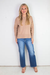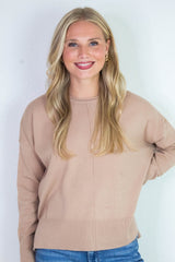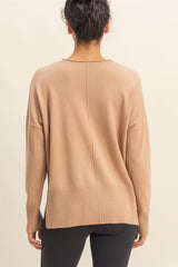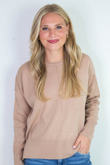 Kenzie Roll Neck Seam Front Sweater, Dark Taupe