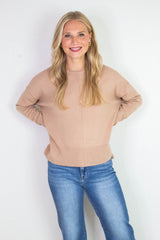 Slip into cozy comfort with the Kenzie Roll Neck Sweater in Dark Taupe. Featuring a chic round roll neck and stylish seam front, this sweater adds a fresh twist to your everyday look. Long sleeves with ribbed cuffs keep you warm, while side slits and a ribbed hem bring effortless movement and flair. Perfect for layering or wearing solo, it's your go-to for playful yet polished style all season long!